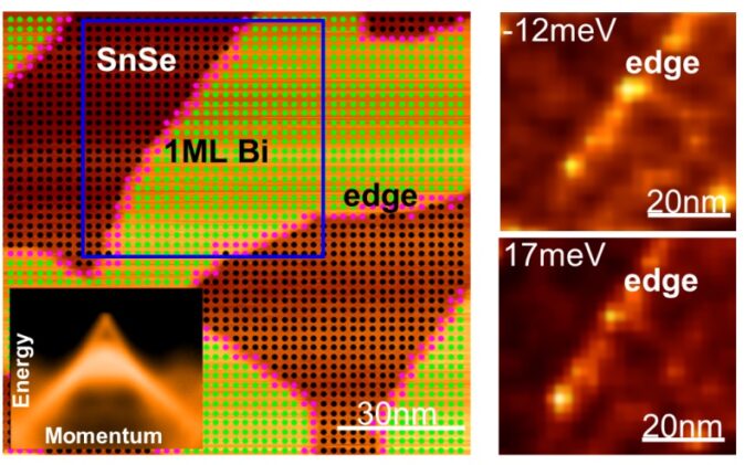 The shift from 3D to 2D matters because electrons behave differently when you trap them in a pancake. The researchers made their material from bismuthene, which has a honeycomb pattern like graphene. But the bismuth atoms don’t sit perfectly flat. They buckle up and down like a crumpled egg carton. To coax out the Weyl fermions, the team used a technique called molecular beam epitaxy. They basically spray-painted atoms onto the tin-sulfide surface one layer at a time.