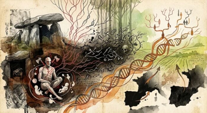 The Bury grave held the remains of 316 individuals across two distinct burial phases, separated by a hiatus of perhaps a couple of centuries when nobody was placed here at all. Seersholm and his colleagues sequenced 132 ancient genomes from the site, making this one of the most densely sampled genetic studies of a single Neolithic monument yet attempted. What they found was not continuity. “We see a clear genetic break between the two periods,” he said. The people buried in Phase 1, roughly 3200 to 3000 BC, were genetically typical of Stone Age farming communities from northern France and Germany. The people buried in Phase 2, from around 2900 BC onward, were largely strangers, carrying ancestry that traced back overwhelmingly to southern France and the Iberian Peninsula.